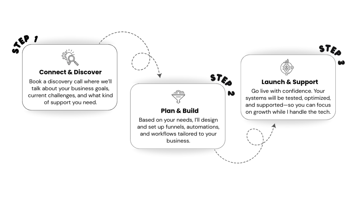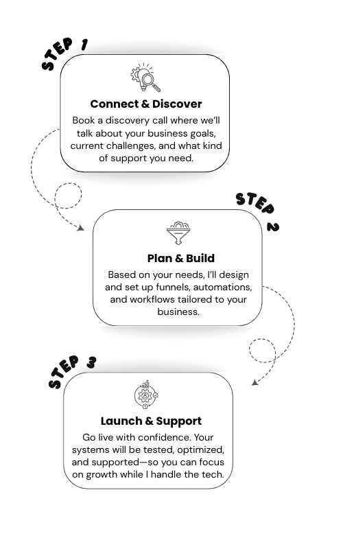 I handle the funnels, automations, and backend tasks so you can stay focused on growth and serving your clients.